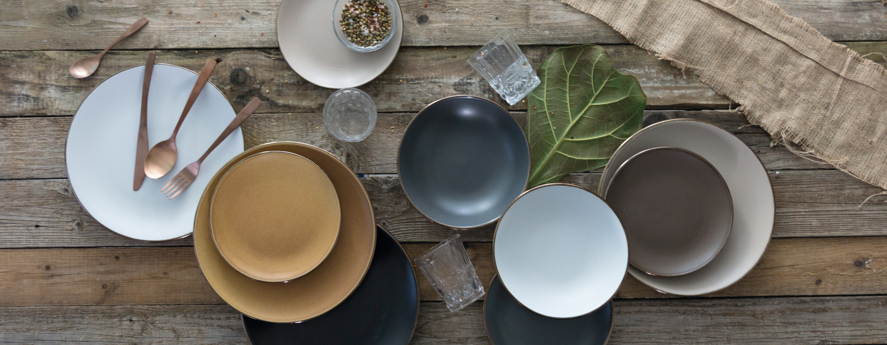 Il servizio Cala Dorada ci porta indietro negli anni con il suo gusto retrò rivisitato in chiave moderna. Mix di colori caldi e bordatura d'oro effetto vintage creano una mise en place elegante e raffinata capace di conquistare tutti gli ospiti con il suo stile unico.